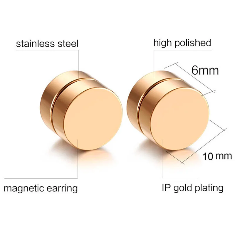 Магнитные серьги-гвоздики, из нержавеющей стали, 10 мм