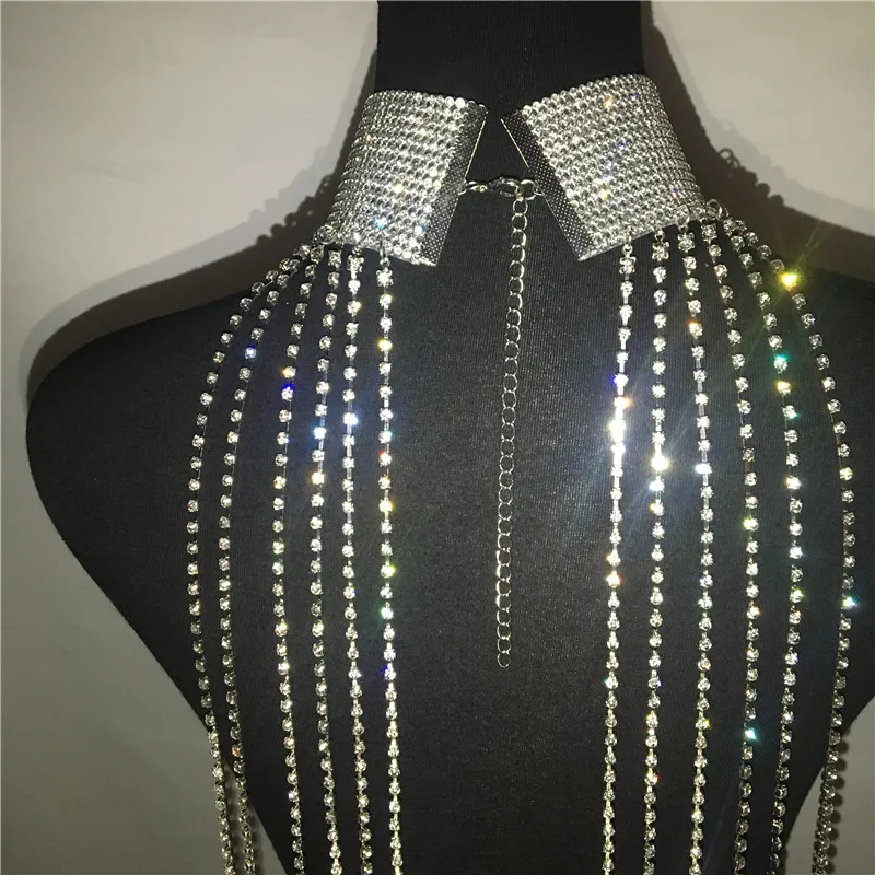 Женское мини-платье стразы с кисточками и цепочкой сексуальное прозрачное эффектное ожерелье серебряное со стразами без рукавов ажурное платье-чокер