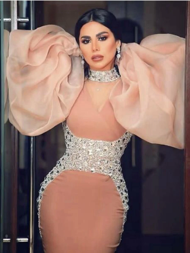 Вечерние платья русалки 2020 с длинным рукавом для женщин в Турции розовый бисер Формальное выпускное вечернее платье сексуальное размера плюс