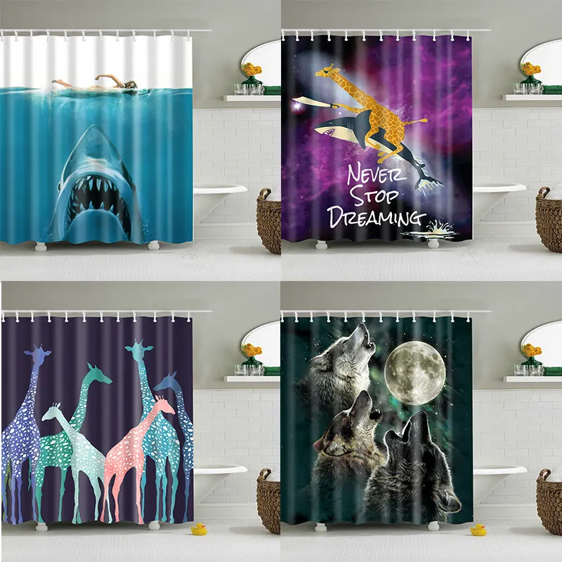 Водонепроницаемая шторка для душа с 3D-принтом волка и акулы, полиэстеровый занавес для ванной, моющаяся декоративная занавеска в ванную комнату с 12 крючками