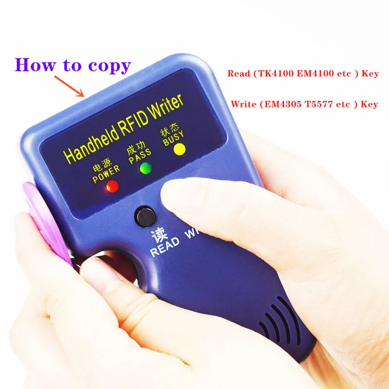 Как использовать его: шаги по эксплуатации, как показано ниже: Шаг 1 включить, светодиодный индикатор питания должен светильник вверх. Шаг 2 Поместите карту, которую необходимо скопировать в области чтения. Step3 Пресс кнопку Read, если читать ok читать светодиод должен светильник и звуковые сигналы. Шаг 4: Положите карту, нажмите кнопку «написать», если запись в порядке, Напишите светодиодный должны светильник и звуковые сигналы. Step5 в том случае, если хотите написать больше карты с тем же ID, повторите шаг 4Step6 отключение для экономии Мощность.