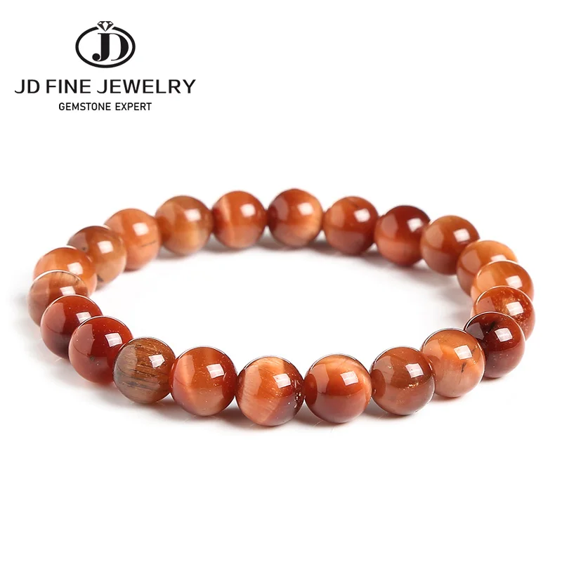 JD натуральные драгоценные камни бусины Оранжевый солнце тигровый глаз камень Гладкий Круглый браслет хорошее качество подарок для девочки 18-19 см