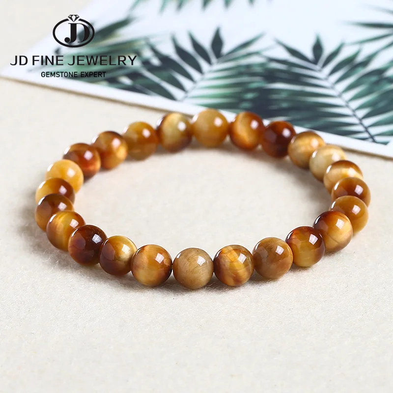 JD 8-16 мм Золотой Цвет Тигр глаз камень бусины браслет китайские т...