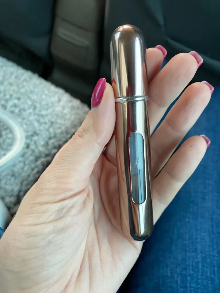 Отличное приобретение! Размером с тюбик помады. Очень лёгкий. Теперь можно носить в сумочке любимый аромат и освежать в течение дня. Переживала, что при заправке будет просачиваться запах, но таких проблем не было. Сам процесс заправки элементарен.