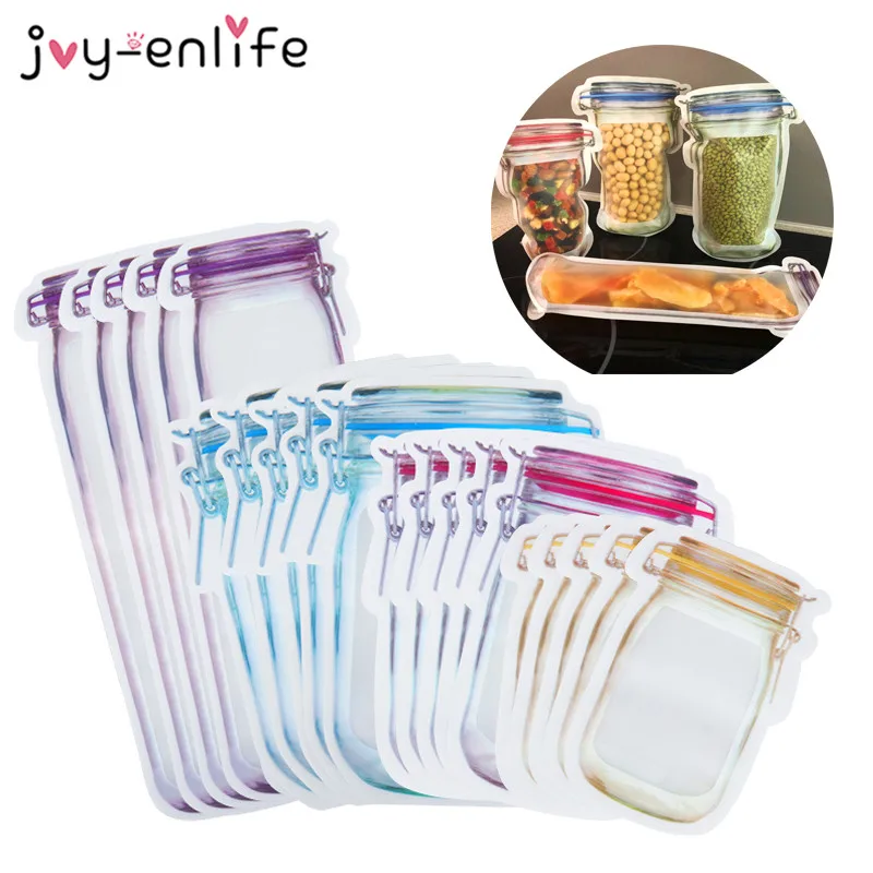 5 шт. Многоразовые Пакеты для бутылок с каменщиком, сумка для хранения орехов, конфет, печенья, сумка для хранения свежих продуктов, сумки на молнии, органайзер для кухни