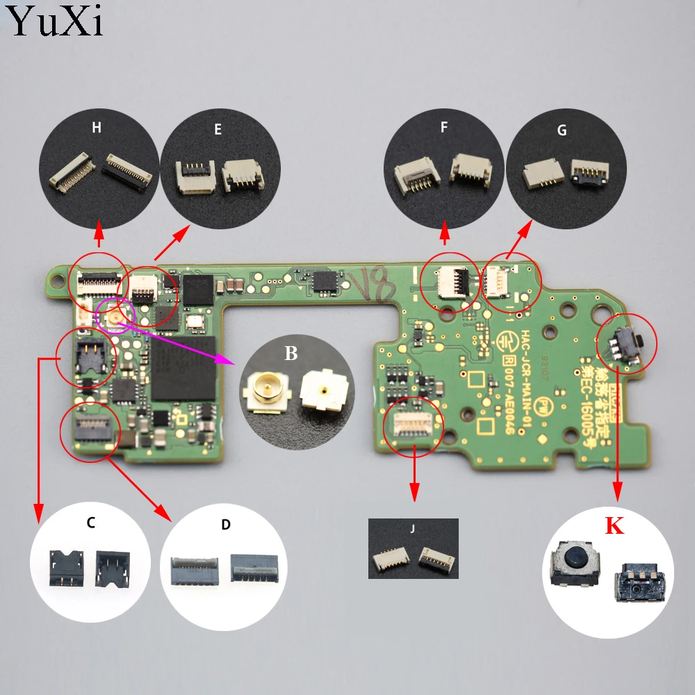 Сменные детали YuXi для Nintendo Switch NS Joy Con Joy-Con, печатная плата, гибкий кабель, соединитель, гнездо, зажим, запасные части