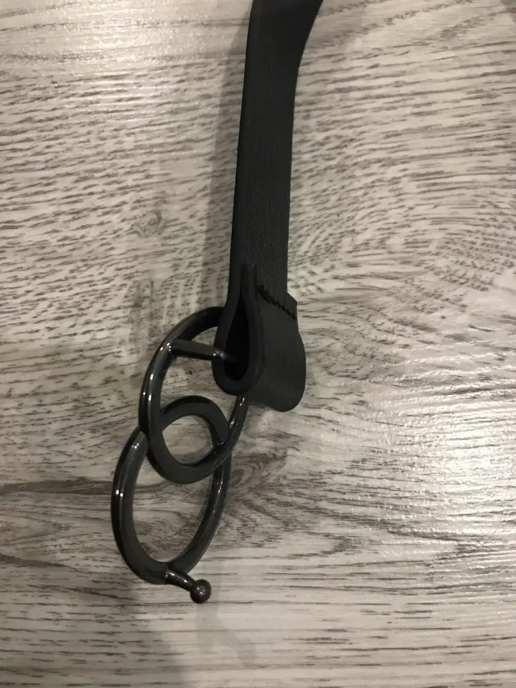 Хороший ремень, выглядит стильно. Есть небольшой запах, но уверена со временем выветрится. Длина ремня около 100 см.
