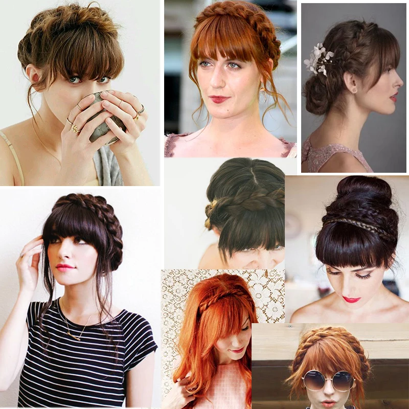LUPU синтетические волосы челка с косичкой Натуральные Искусственные волосы тупая бахрома челка на заколках для наращивания волос черный коричневый для женщин