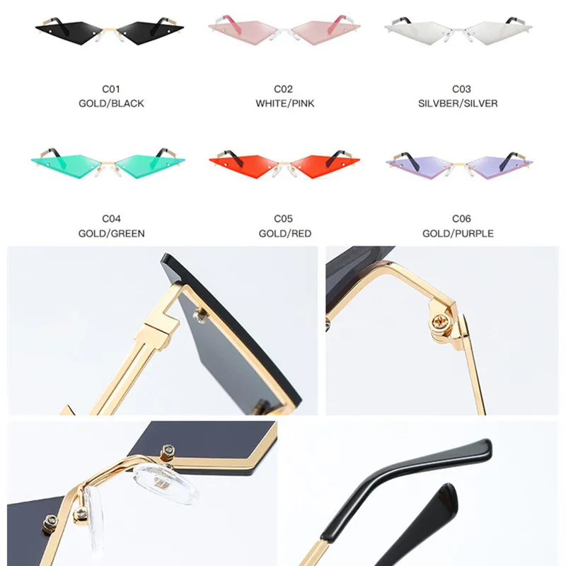Солнцезащитные очки кошачий глаз в металлической оправе для мужчин и женщин, зеркальные, в винтажном стиле, трендовые, в треугольной оправе