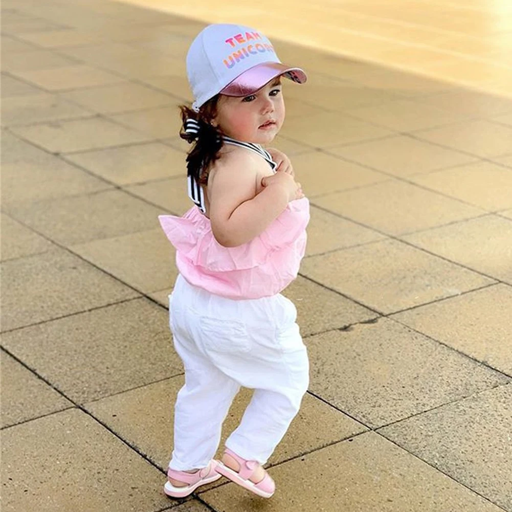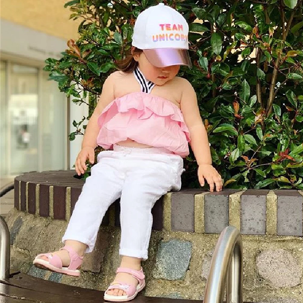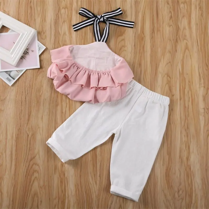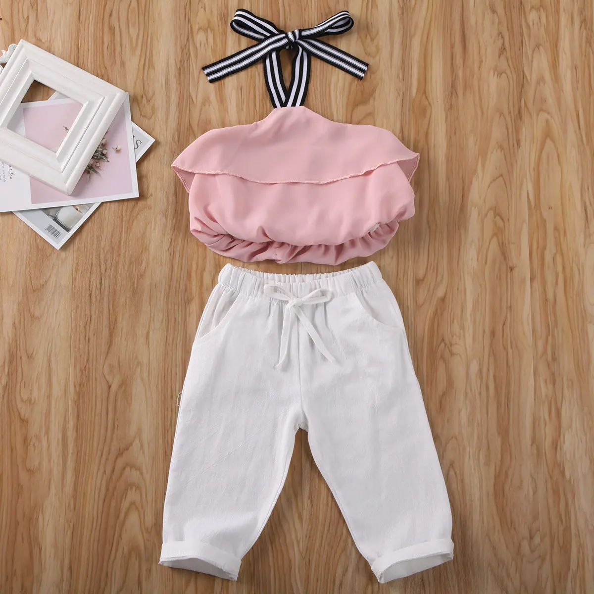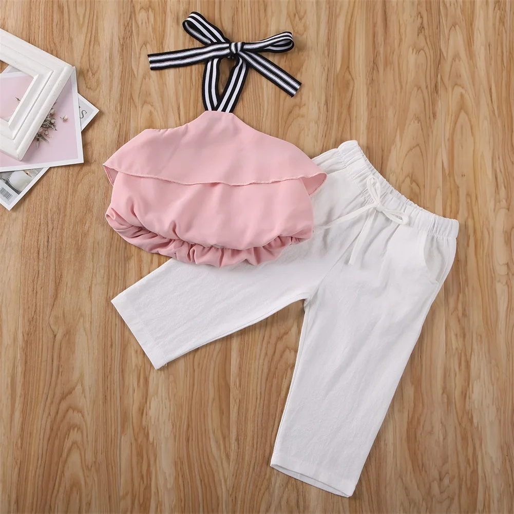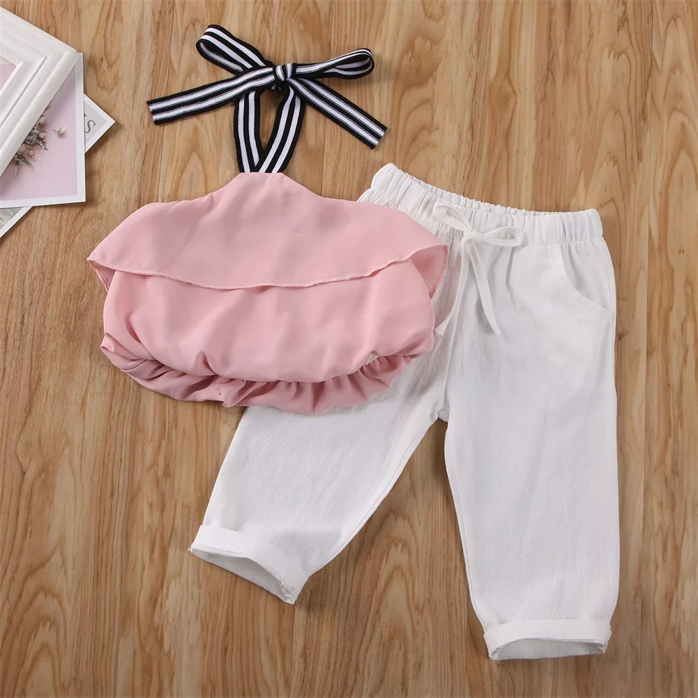 Комплект одежды из двух предметов для маленьких девочек, укороченный топ и штаны, комплект летней одежды