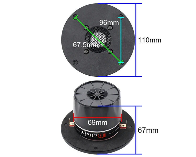 Анализ материала: ①. Черная окрашенная алюминиевая пластина ②. Защитная сетка для звуковой пленки ③. Композитная керамическая звуковая пленка ④. Шайба ⑤. Магнит 70 мм ⑥. Звукопоглощающая полость ⑦. Короткое замыкание медное кольцо ⑧.T железо ✮. Независимая вибрационная полость Импортная шелковая кромка + высококачественная керамическая композитная пленка не только имеет теплый звук шелковой пленки, но и решает общую проблему высоких и сверхнизких и тусклых звуков. Этот материал обычно появляется на высококлассных твитерах. Метод короткого замыкания медного кольца заключается в том, чтобы поместить медное или алюминиевое кольцо короткого замыкания на внешний диаметр магнитной колонки или внутренний диаметр магнита. Роль вторичной катушки звуковой катушки, из-за эффекта короткого замыкания индуктивность звуковой катушки близка к нулю, А кольцо короткого замыкания делает нелинейную индуктивность магнитного материала небольшой, уменьшая тем самым искажение динамика! Независимая акустическая полость + звукопоглощающий хлопок высокой плотности могут эффективно устранить множество гармоник, возникающих в звуковой пленке во время высокочастотной вибрации. Второе усиленное усиление проникает в звуковую пленку и распространяется на ухо человека. Чем больше будет слышно звук, тем больше вкуса! Прозрачный, четкий, высокая чувствительность, стабильное магнитное поле, уменьшение искажений, улучшение качества звука, устранение множества гармоник и отсутствие цветовых помех Вес: 0,604 кг Магнитная сталь: 70 мм Размер: 110 мм Звуковая катушка: 25-жильная композитная керамическая мембрана Мощность: 30 Вт-60 Вт Импеданс постоянного тока: около 6,8 Ом Чувствительность: 94 дБ Частотный диапазон: 1,2 K-22K Посылка: 1 шт.