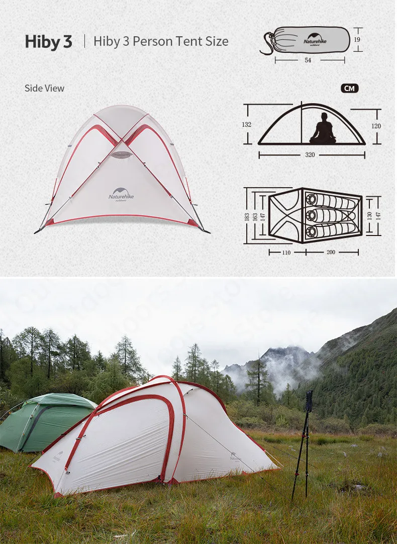 Туристическая палатка Naturehike Hiby, на 3-4 человек, ульсветильник, двухслойная, непромокаемая, 20D, для путешествий и походов, NH17K230-P