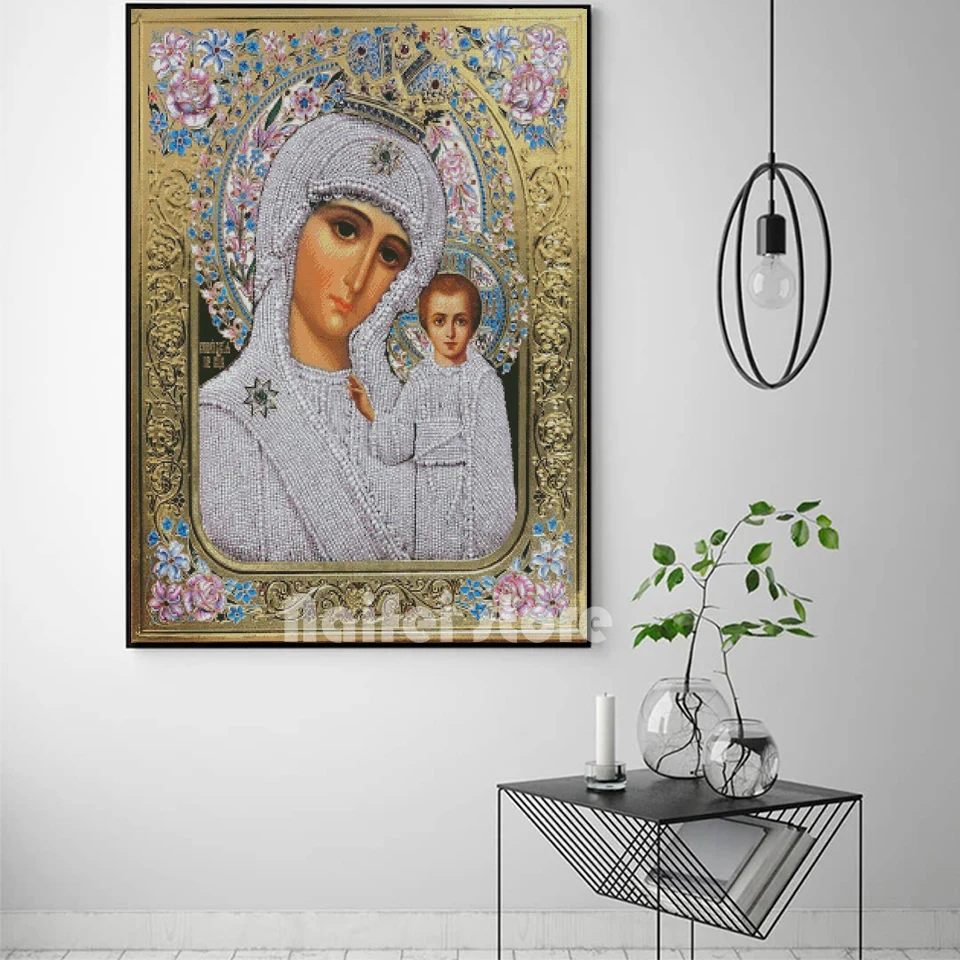 5d квадратная круглая алмазная живопись, Дева и ребенок Казани, пра...