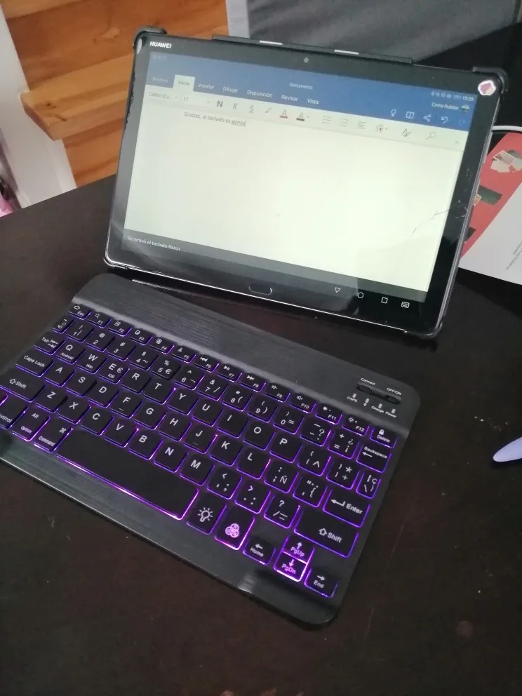 Клавиатура потрясающая, дает ощущение качества, очень тонкая и компактная, очень быстро подключается через bluetooth. Поставляется без коробки, только инструкции. Я не даю ему 5 звезд, потому что, будучи настолько плоским и тонким, он скользит, когда вы пишете, но это решается покупкой ковра или размещением силиконовых прокладок в каждом углу, И батарея, когда вы используете ее со светом, не длится гораздо больше 2 часов, Но это правда, что вы можете загрузить его с помощью того же компьютера, пока вы все еще используете его, и если он заряжается только менее чем за час.