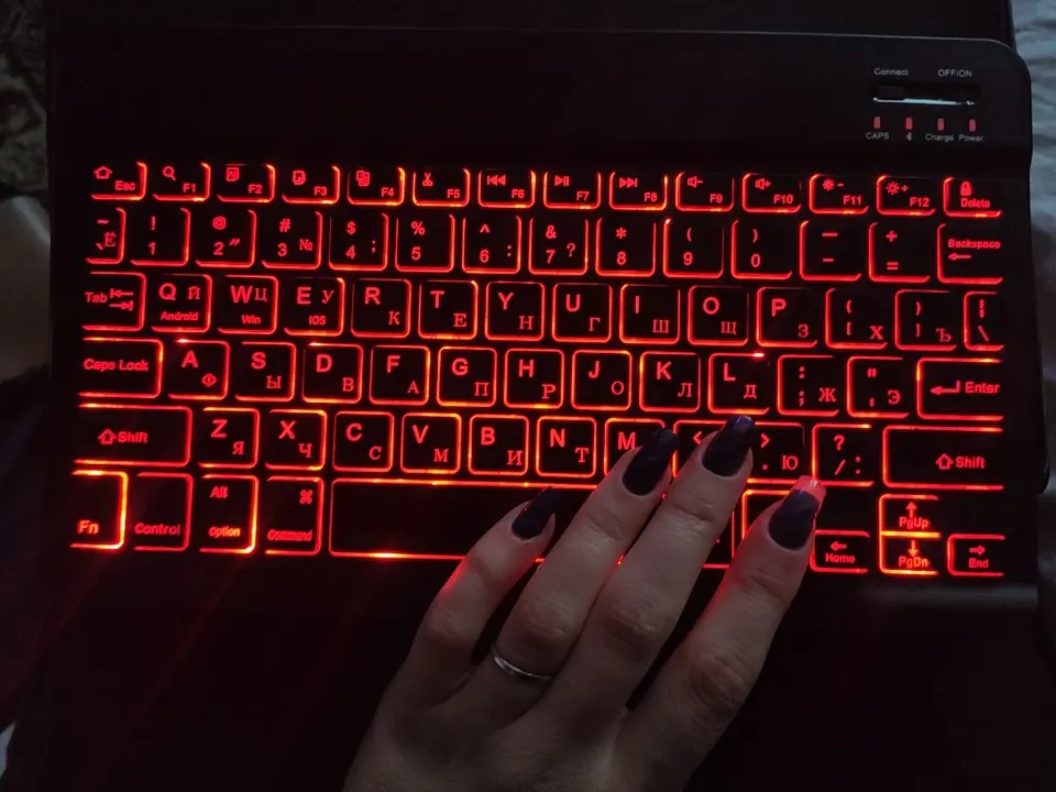 Осень лёгкая и тонкая, отзывчивая, никаких лагов при нажатии, к телефону подключается быстро и без проблем. Но проблема в том, что при включенной подсветке время работы примерно 2 часа, после этого уже начинает мигать огонек, сигнализируя, что надо заряжать. Для меня это минус потому, что я брала клавиатуру с подсветкой как раз, чтобы писать на ней в полутемной комнате и не напрягать глаза и всего 2 часа до подзарядки для меня очень мало. В остальном, нареканий нет.