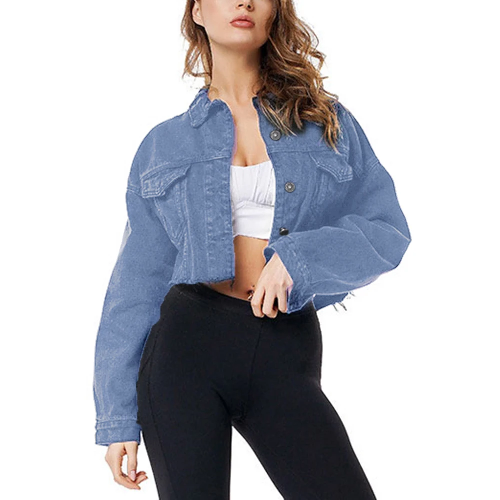 Женская рваная джинсовая куртка, черная однобортная короткая куртка с потертостями на плечах и длинным рукавом
