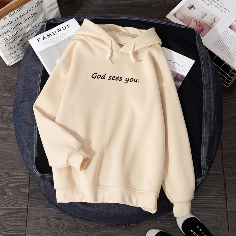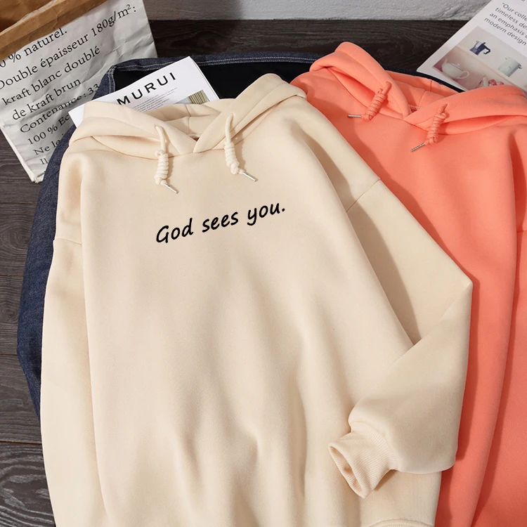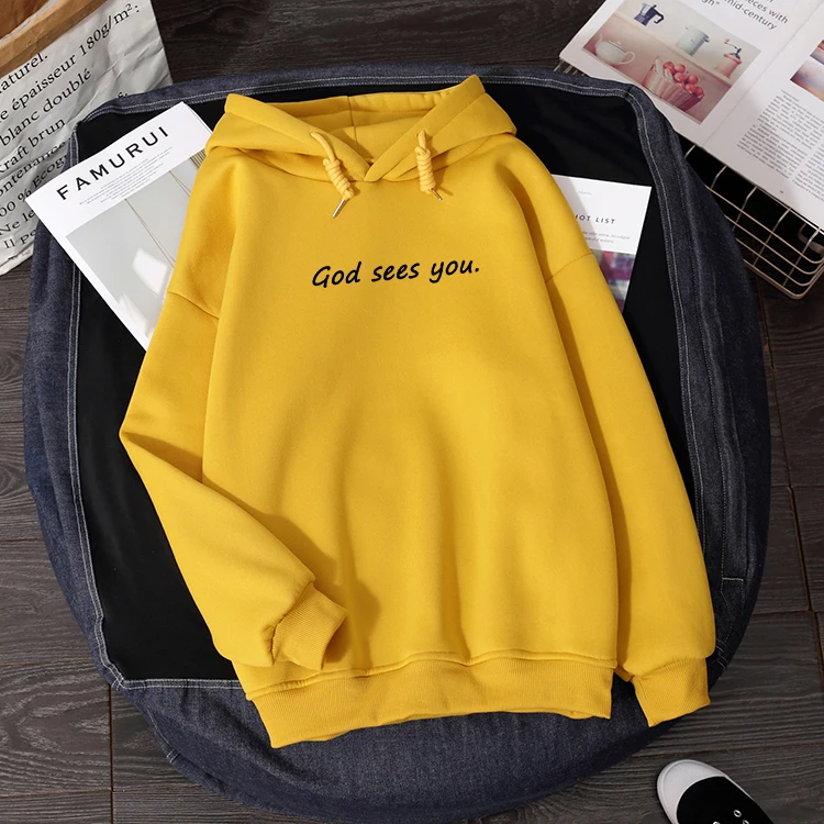Женские толстовки в стиле Харадзюку, худи с надписью God See You, пуловер в стиле Kpop, толстовка большого размера, женские топы, зима 2020