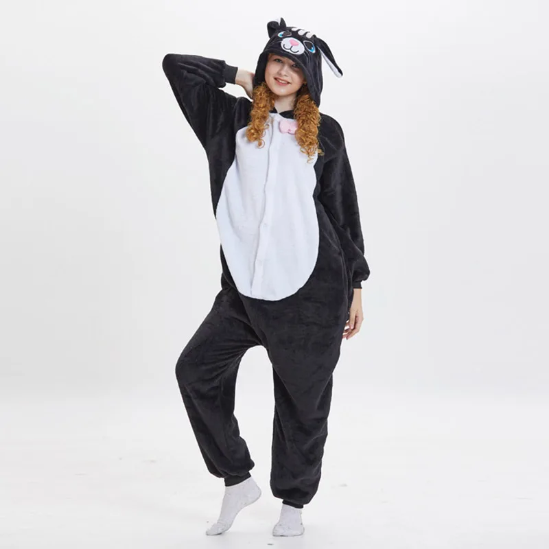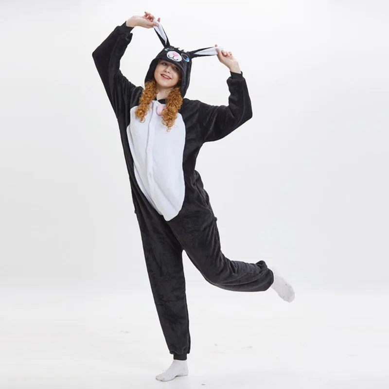Kigurumis женский Пижамный костюм комбинезон Черный кот животное Домашняя одежда взрослая фланелевая мягкая зимняя пижама костюм для вечевечерние