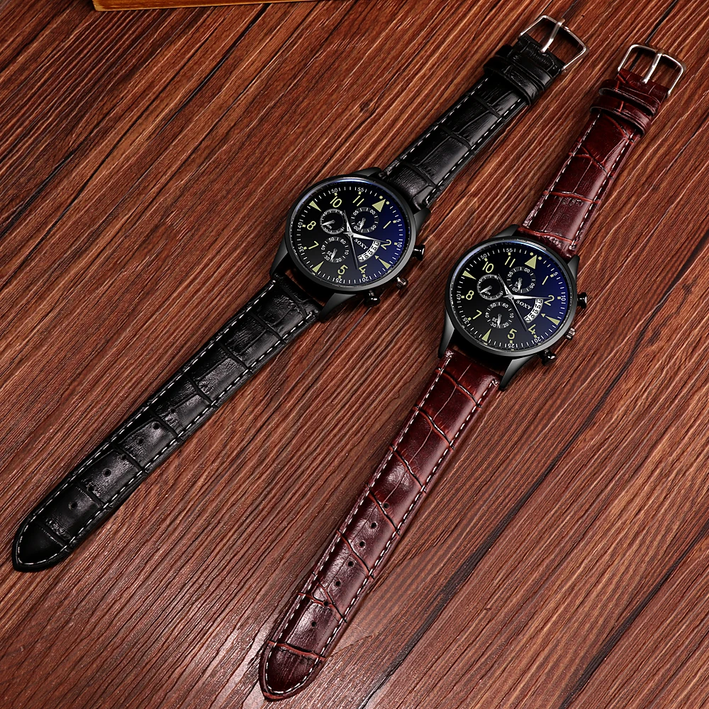 Мужские часы, классические, светящиеся, с календарем, Роскошные, кожаные, кварцевые наручные часы, мужские часы