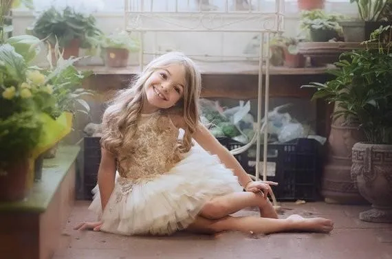 Платья для девочек, пышная юбка с золотыми блестками и цветочным пр...