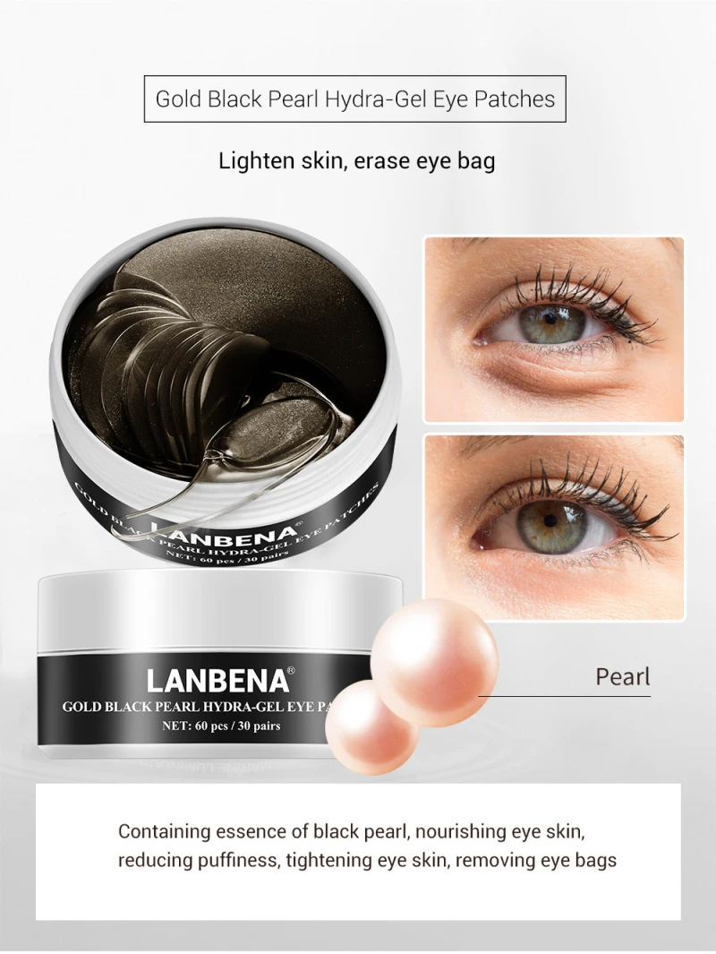 ④Золотые черные жемчужные гелевые Пластыри для глаз