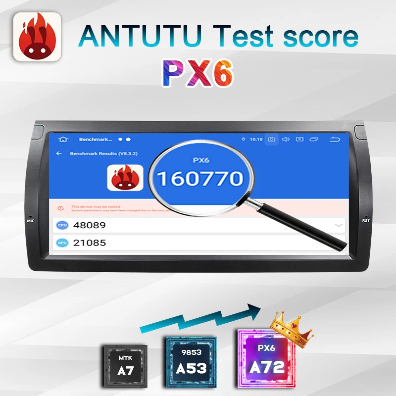 PX6PX6-лучший чип на рынке в настоящее время, он работает быстрее всех типов. Оценка ANTUTU-160770, что лучше 9853, чем 4G + 64G, PX5 и все остальные 4 + 64G на рынке. По сравнению с другими типами радио, радио PX6 может загружать больше видов приложений для android с рынка android, а приложение может работать лучше.