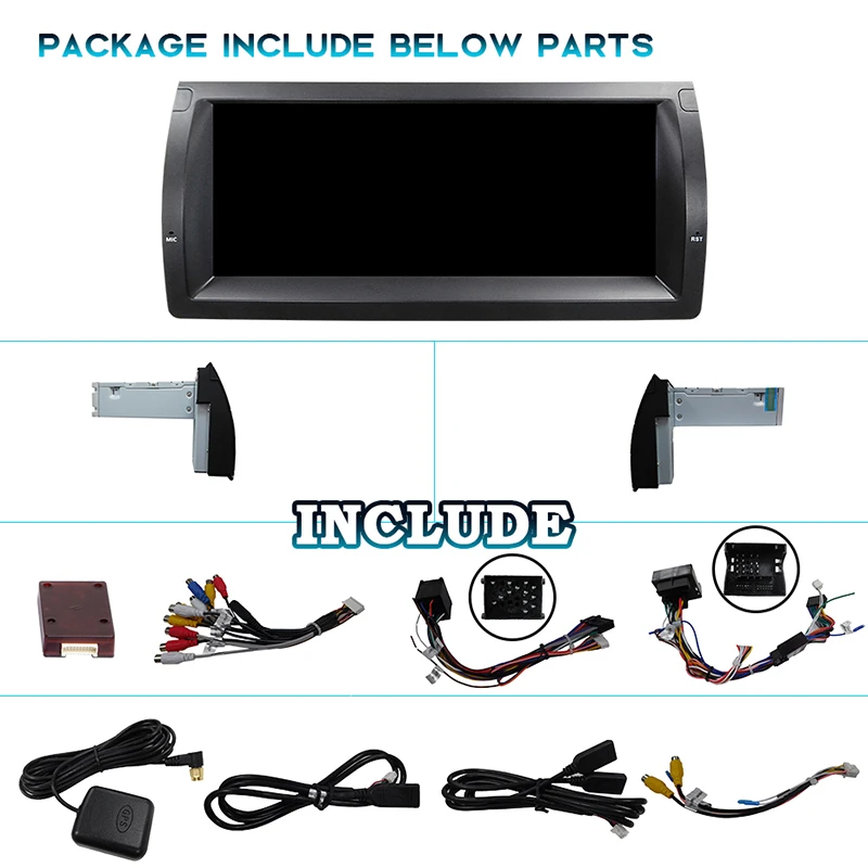 Подходит для:Для BMW 5 серии E39 1996 до 2001 со старым 17-контактным разъемомДля BMW 5 серии E39 2002 до 2003 с новым 40-контактным разъемомДля BMW X5 E53 2000 до 2001 со старым 17-контактным разъемомДля BMW X5 E53 2002 до 2007 с новым 40-контактным разъемомДля BMW X5 1999-2006 E53Для BMW M5:1996-2003 (новый 40 Pin или старый 17 Pin)Примечание: совместимый список предназначен только для справки, пожалуйста, подтвердите форму и размер центральной консоли перед подачей заявки.Важное примечание:1. Пожалуйста, проверьте центральную консоль вашего автомобиля и посмотрите, есть ли крышка кондиционера. Если она есть, вы можете удалить ее в контейнер, а затем идеально установить этот блок в вашем автомобиле.2. Если оригинальная магнитола вашего автомобиля-экран 4,3 дюйма или 7 дюймов с 12-контактной вилкой или у вас есть навигационный привод, расположенный в задней части вашего автомобиля, вам необходимо заказать дополнительный Удлинительный кабель длиной 6 м, чтобы облегчить установку.3. Обратите внимание, что если ваш радиоприемник имеет 17 контактов, а некоторые 4 контакта пустые, это устройство не подходит для вашего автомобиля. (Пожалуйста, свяжитесь с нами для получения дополнительной информации.)4. Пожалуйста, проверьте, находится ли порт радиоантенны вашего автомобиля в багажнике. Если это так, вам необходимо заказать удлинитель радиоантенны и адаптер антенны, чтобы завершить установку.1. Подарок = инструменты + микрофон + копирование файлов карт на GPS внутри (вы можете использовать gps напрямую, карта в комплект не входит).