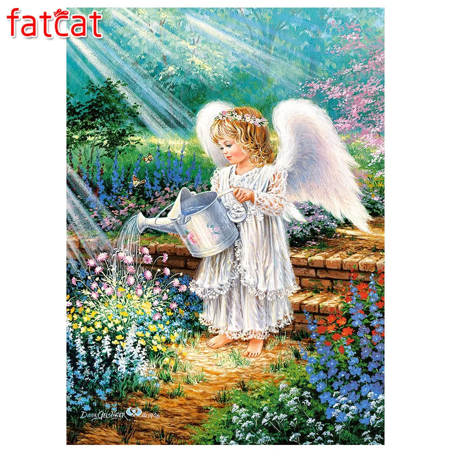 Алмазная 5d картина с ангелом FATCAT, живопись сделай сам, искусственная картина, квадратные и круглые мозаичные наклейки, домашний декор AE512