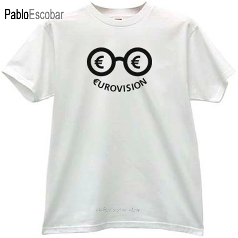 Хлопковая мужская футболка, модные футболки на Евровидение, забавная футболка черного цвета, летняя брендовая футболка большого размера