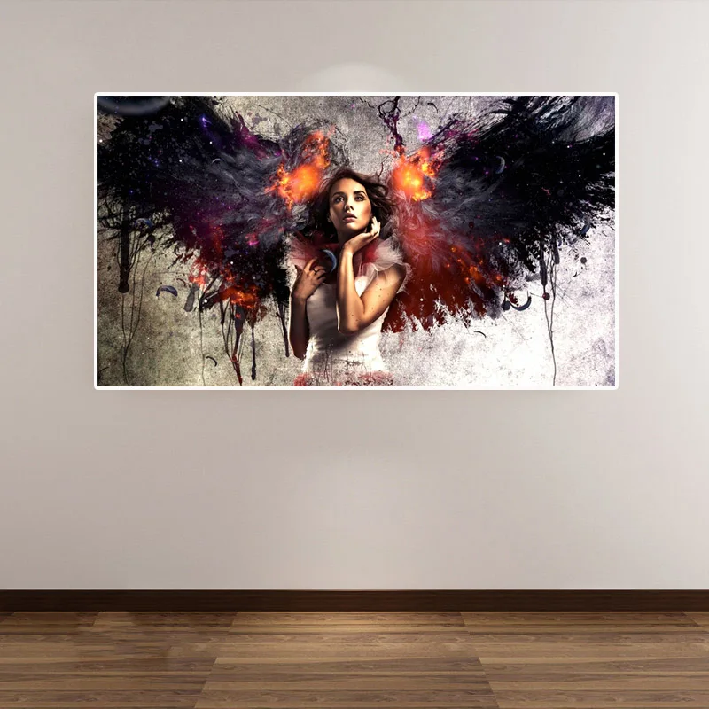 Черные белые крылья ангельская девушка холст картина плакаты картины Декоративные Масляные картины искусство стены Плакаты для стены домашний декор