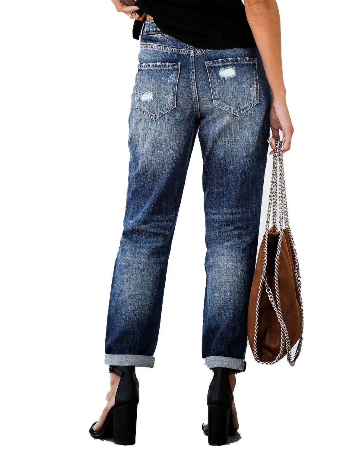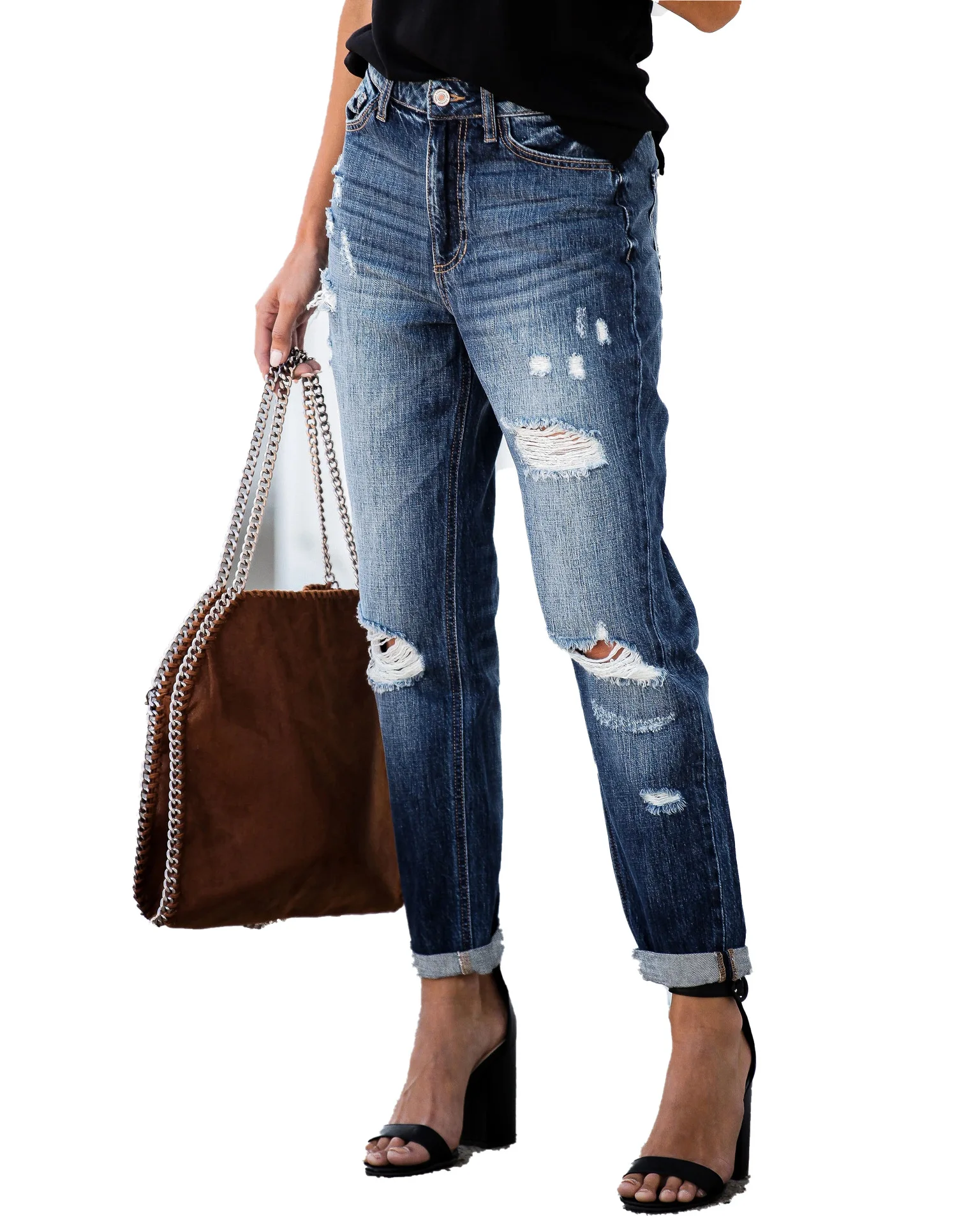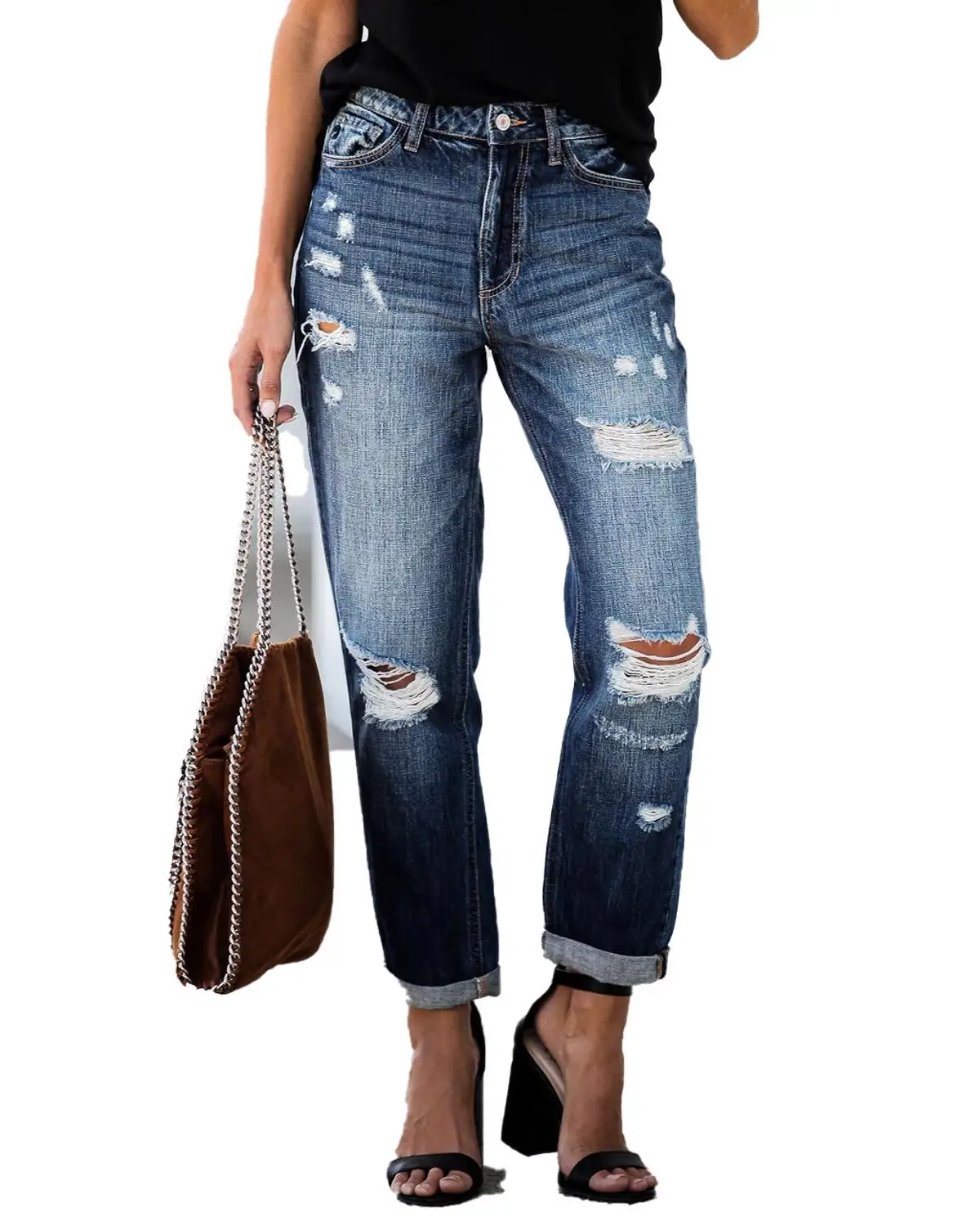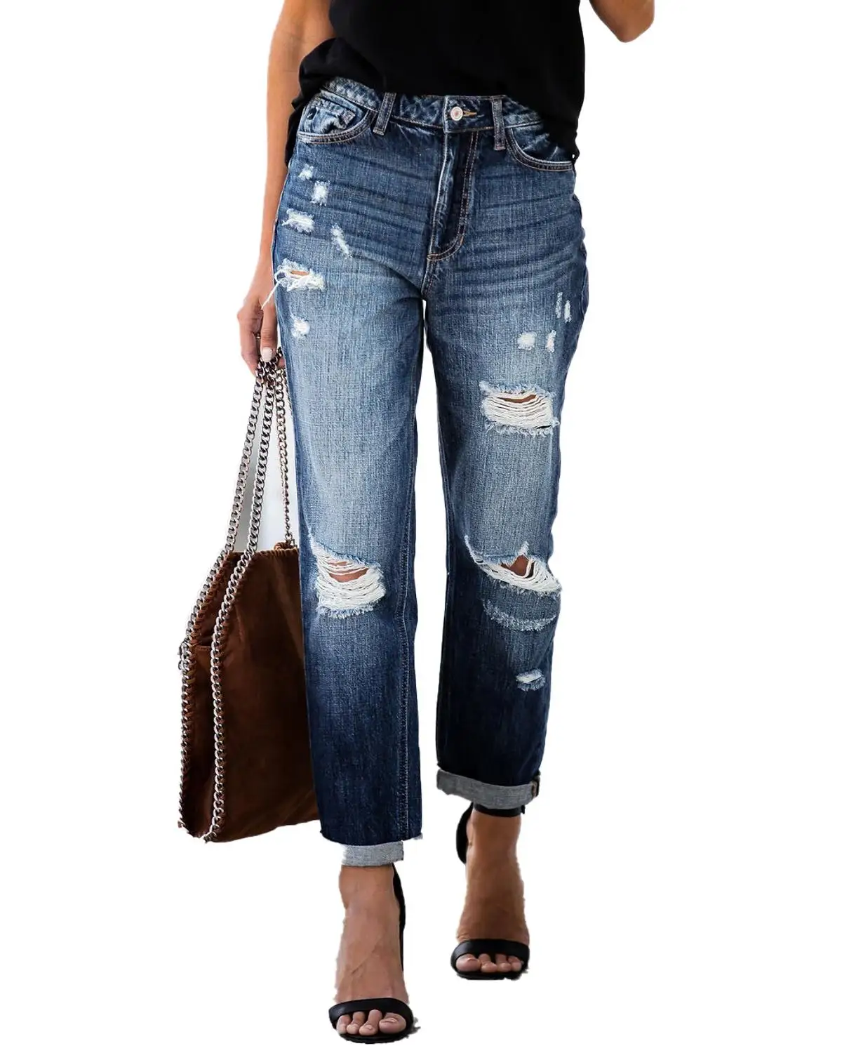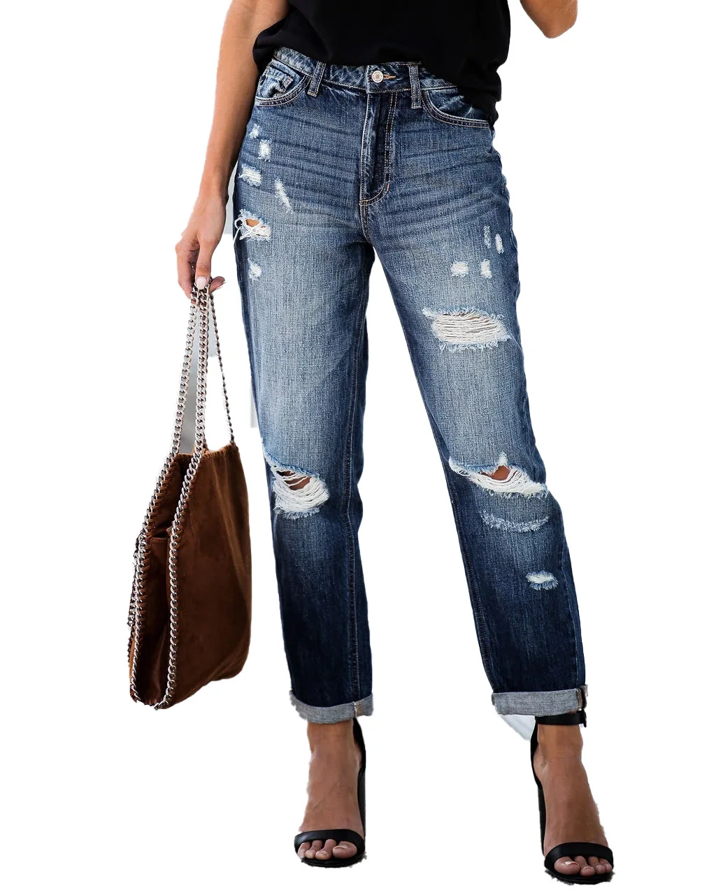 Новинка 2020, рваные джинсы с высокой талией в стиле ретро для женщин, джинсы для мам, джинсовые брюки, женские свободные джинсы-бойфренды с дырками, брюки, женские джинсы