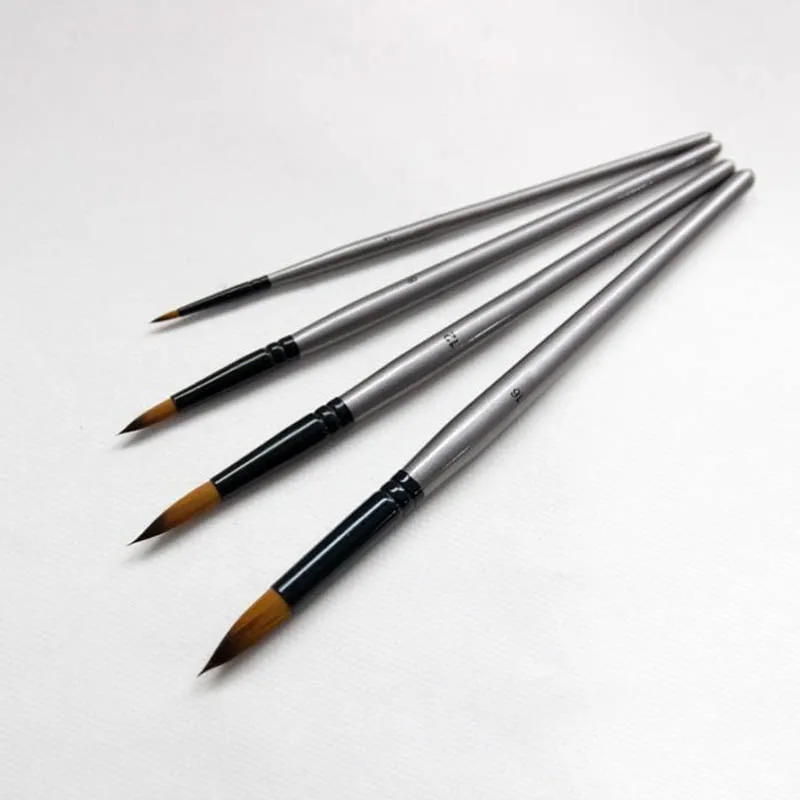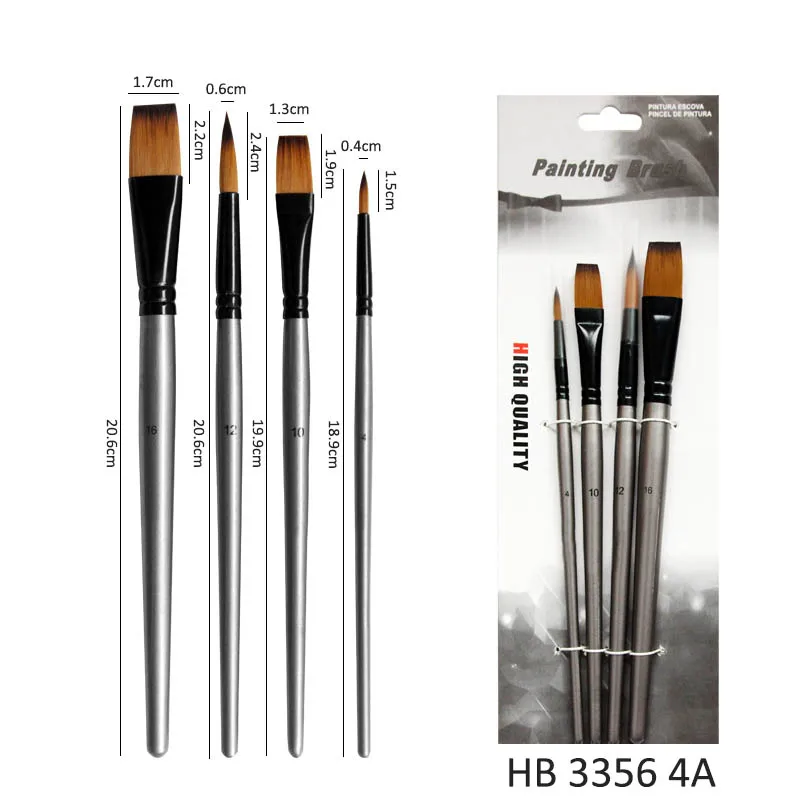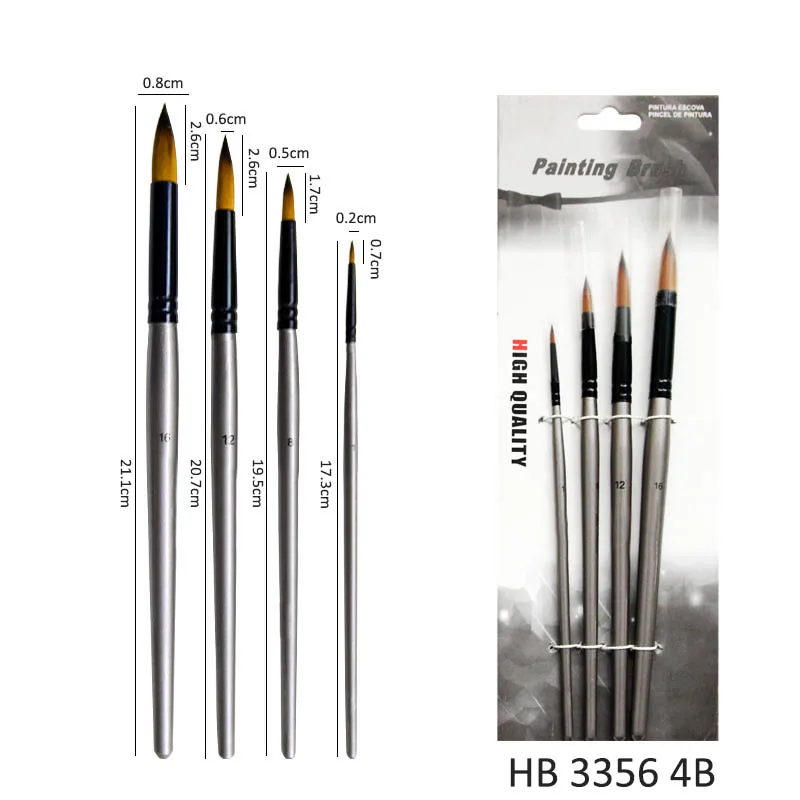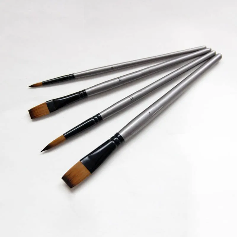Набор кистей для рисования из нейлона, 4 шт.компл., в алюминиевом тубусе, серебристого цвета, с деревянной ручкой кисти для живописи маслом, инструменты для студента