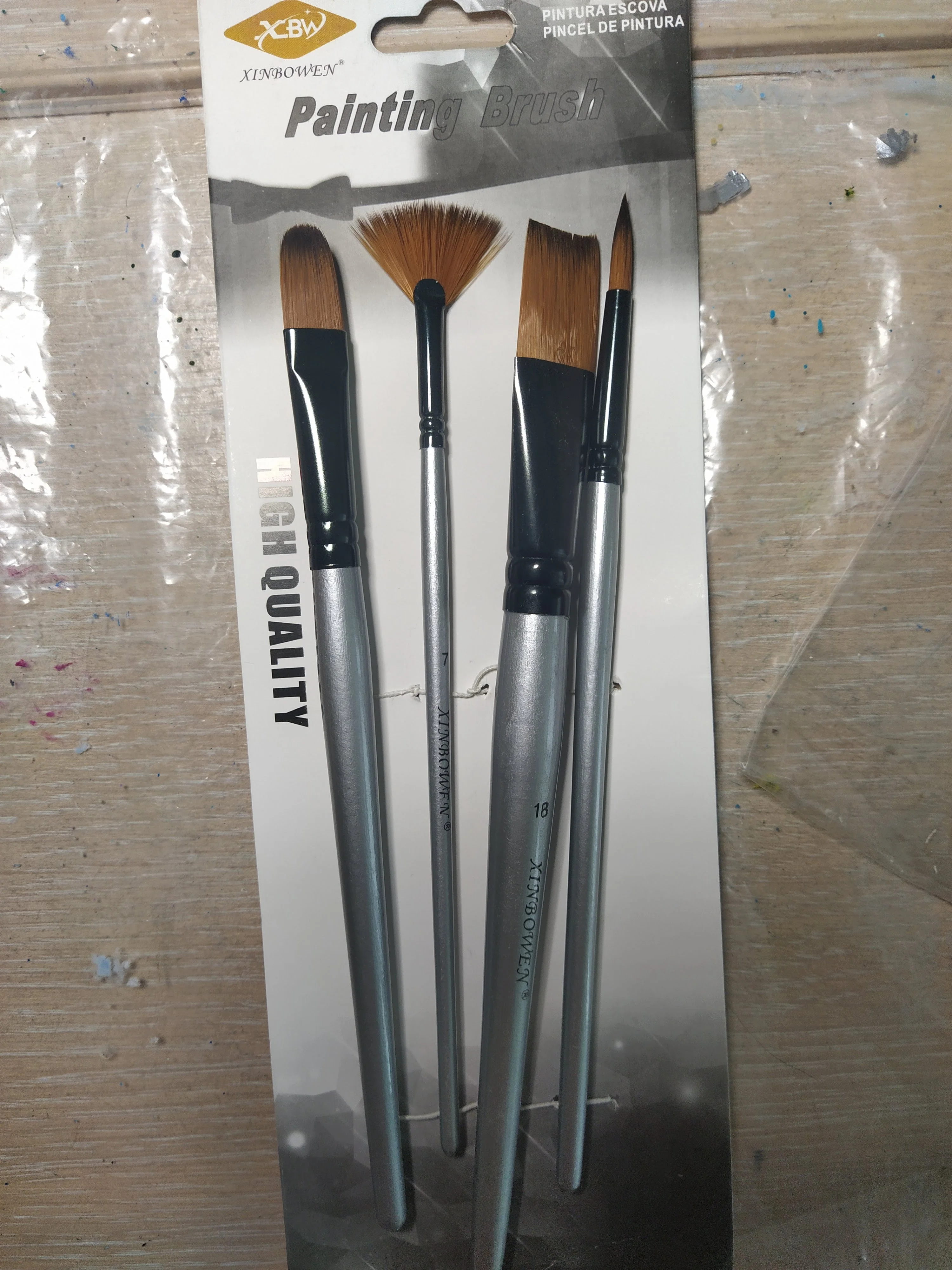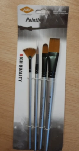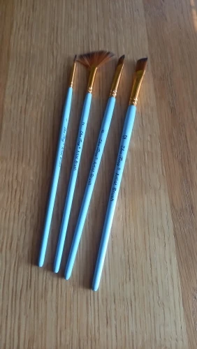 Кисти пришли хорошо упакованными, но на этом плюсы заканчиваются. У широкой кисти брак в набивке ворса. Круглая кисть через 2 недели использования испортилась: ворс начал выпадать и в итоге сломался держатель (цоколь). Веерная кисть в ширину 2,5 см, а не 4,4 см как было заявлено по фото. в итоге 155 рублей за 4 кисточки с плохим качеством. не советую заказывать этот набор