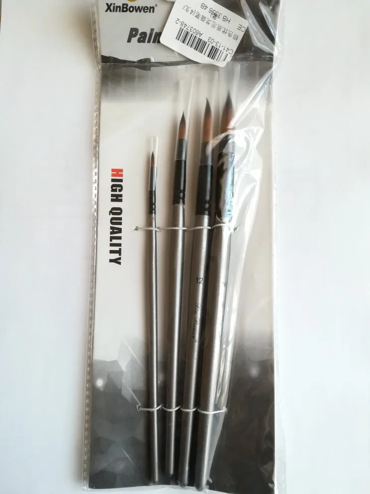 Отстойные кисти и такая же упаковка. Пришли все распушенные. Для акварели не подходят и вообще для красок не подходят. Впитывают ее в себя куда-то. Китайская магия вне Хогвартса.