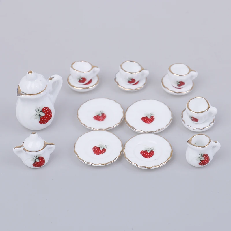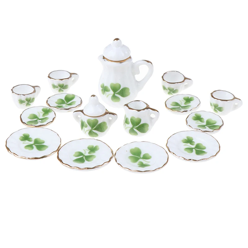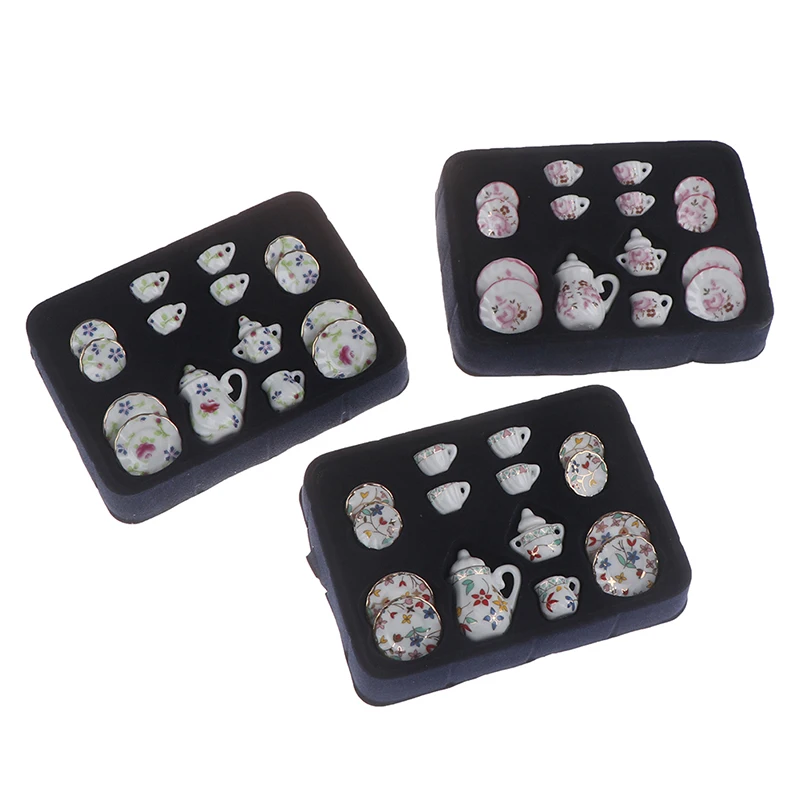4 узора, 1:12, миниатюрный набор из 15 фарфоровых чашек для чая, чайный набор, Цветочная посуда, кухонный кукольный домик, мебель, игрушки для детей