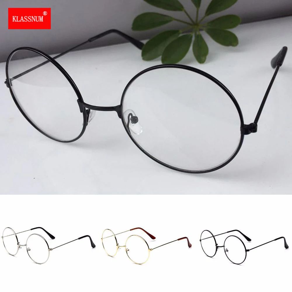 Ретро металлическая оправа прозрачные линзы очки модные очки винтажные очки черные золотые серебряные большие круглые очки