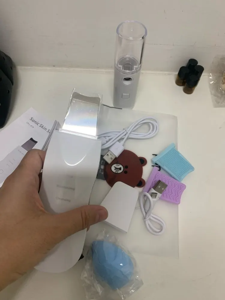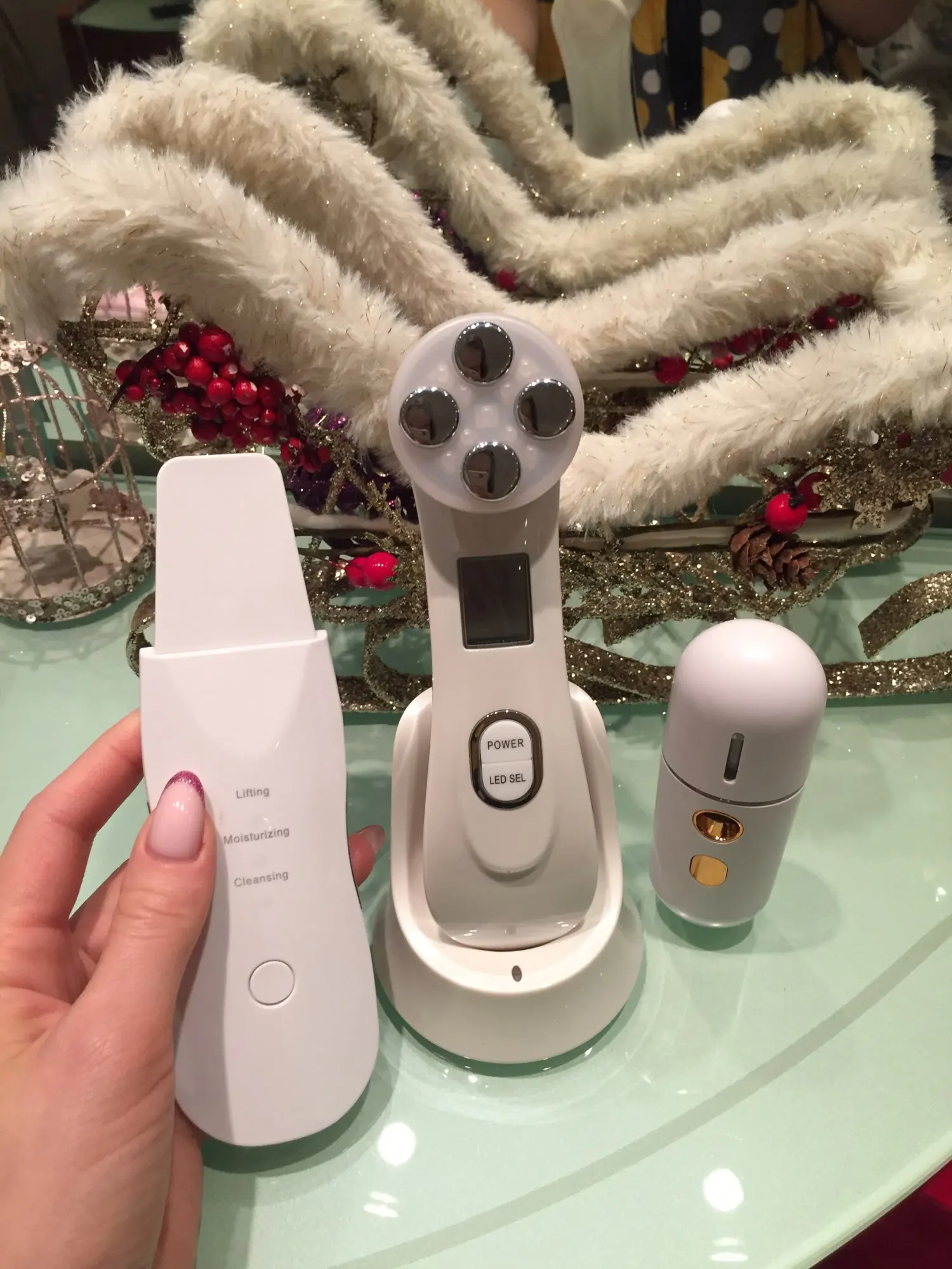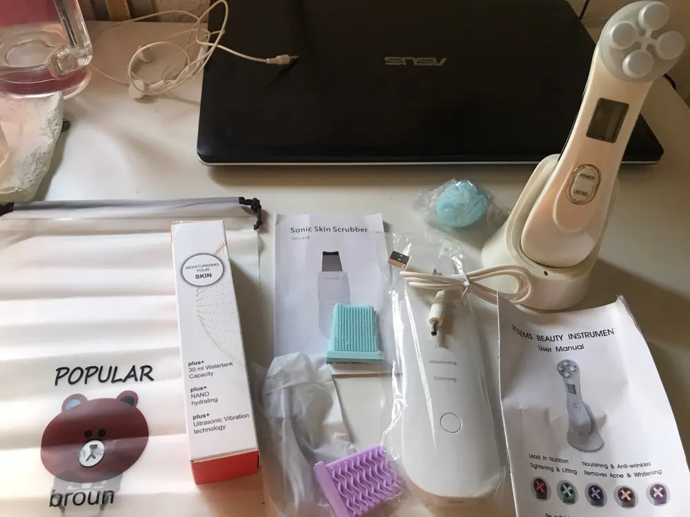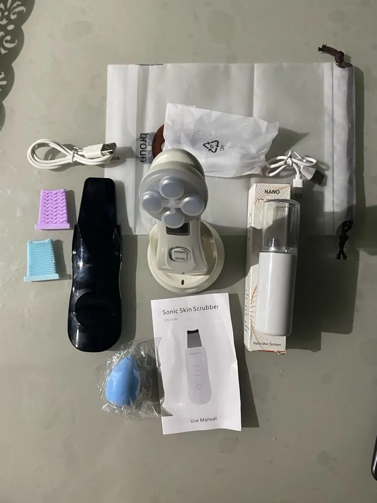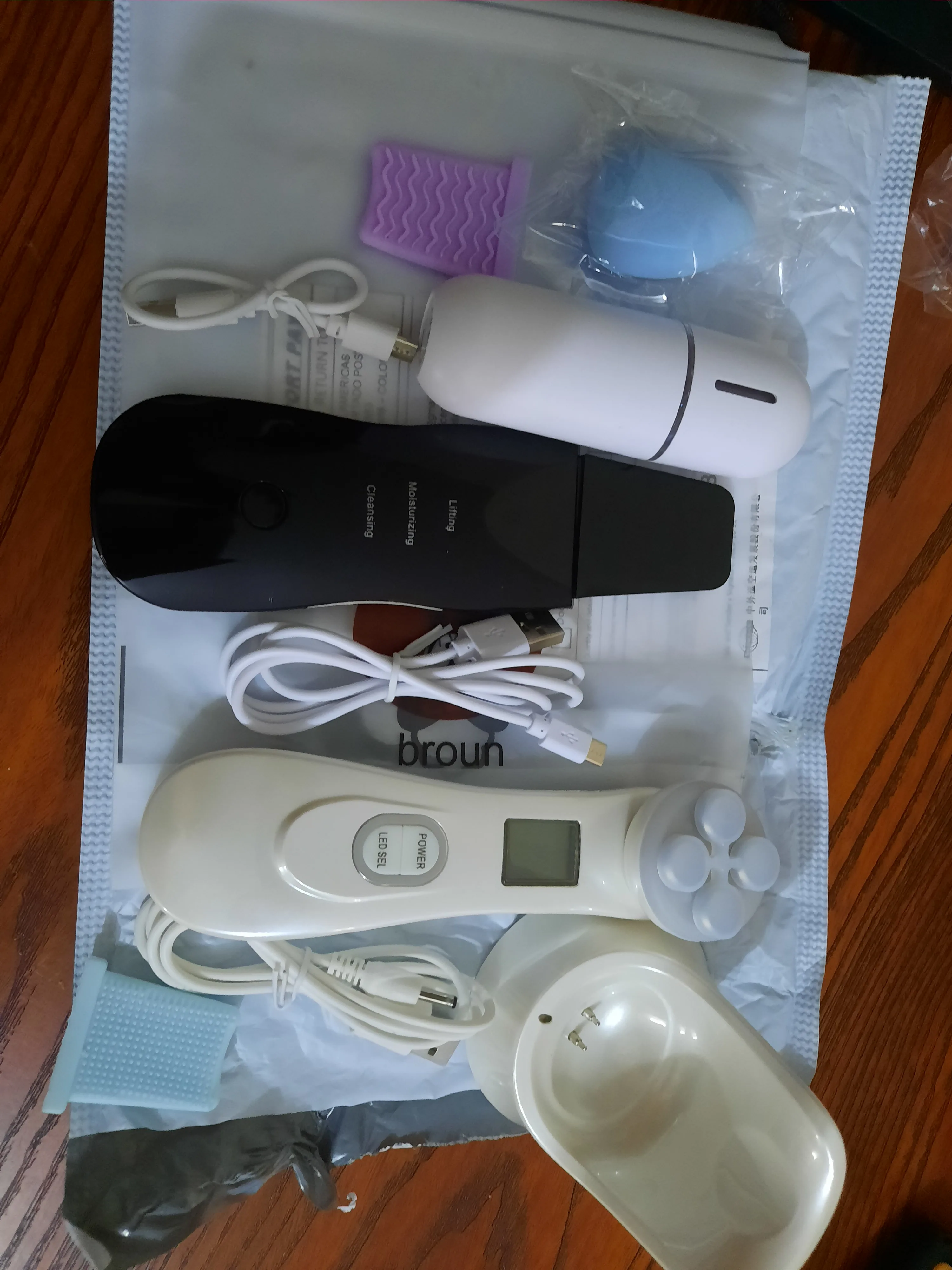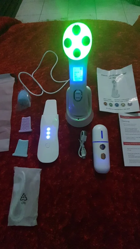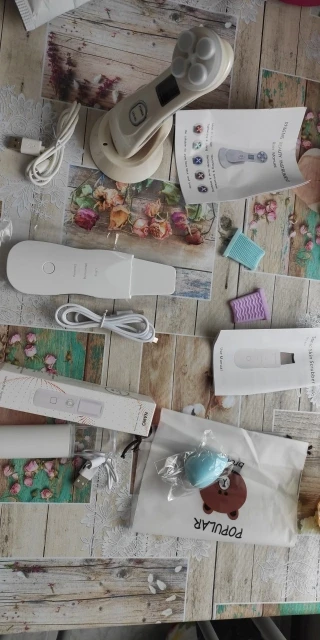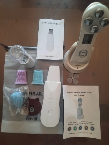 Неплохой набор, всё работает скрабер конечно не ультразвуковой, при хорошо распаренном лице можно удалять черный точки, конечно только с физическим усилием. Использую больше как массажер с насадками.Световой массажер, на максималке прям щипает,пришло прямо к нг, спасибо. Жду гель и буду молодеть))