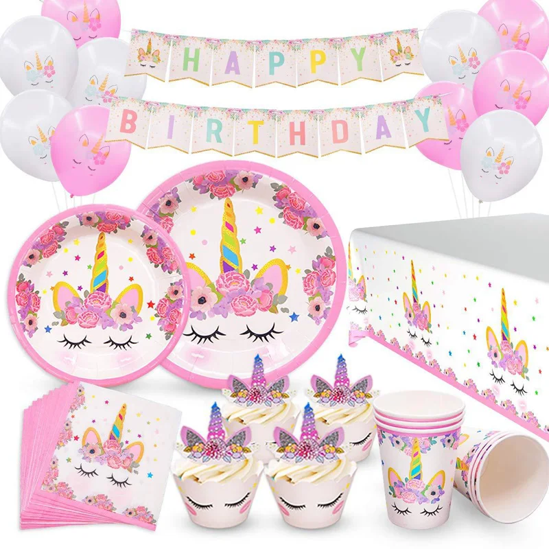 Набор одноразовой посуды, с единорогом, для детвечерние дня рождения, принадлежности для тематической вечеринки