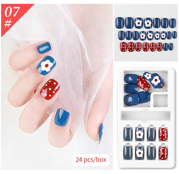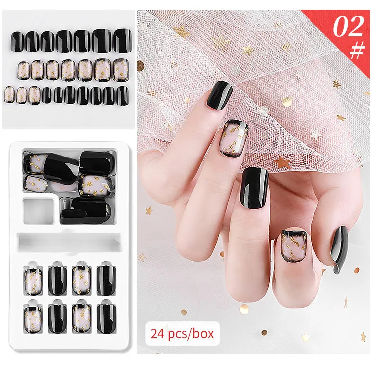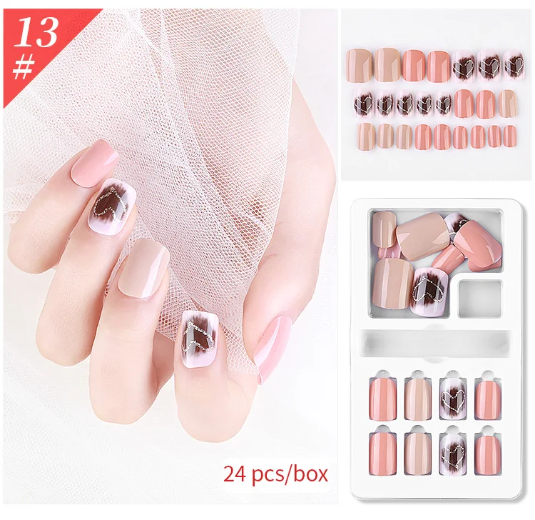 24 шт Съемные накладные ногти с полным покрытием, искусственные накладные накладки с клеем