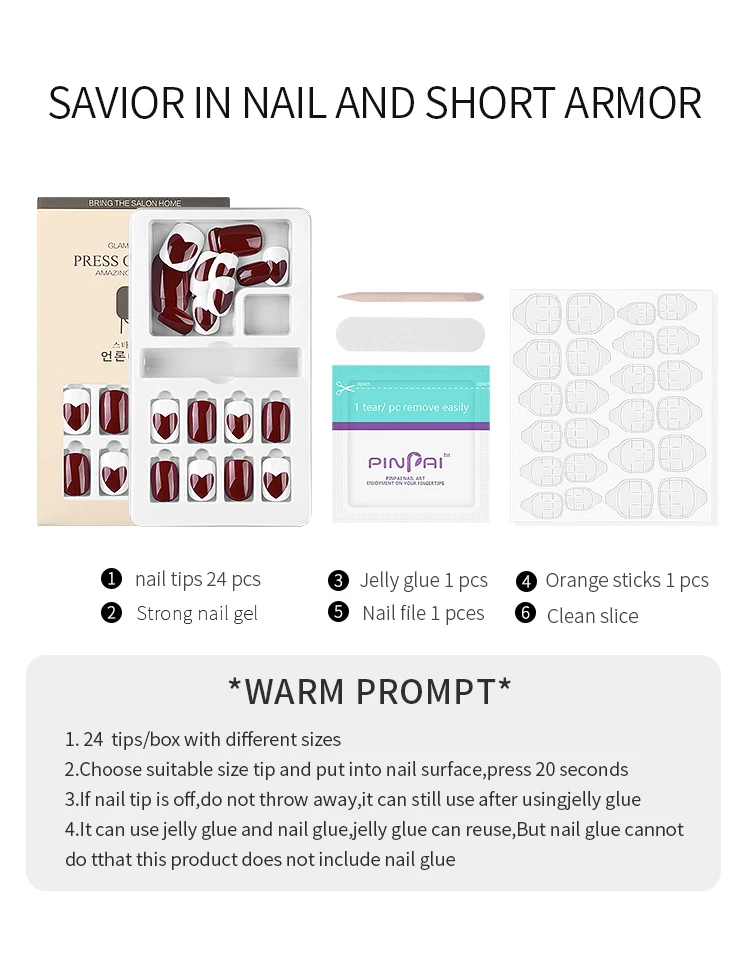 Описание продукта: Тип изделия: легкие бесшовные накладные ногти Цвет: 22 цвета s как на фотографии Размер: 12 Размер s Посылка: накладные ногти 24 шт. + 1 Лист наклейки для ногтей + 1 пилочка для ногтей + 1 Толкатель для ногтей + 1 обертка для удаления ногтей С помощью шаги: 1. Очистите кутикулу ногтей 2. Используйте пилку для ногтей 3. Очистите ногти 4. Выберите подходящую двустороннюю наклейку и приклейте ее 5. Выберите подходящие накладные ногти и приклейте их 6. Готово и получить эффект Пожалуйста, обратите внимание: Если вы используете наклейку для ногтей, чтобы наклеить эти накладные ногти, кончики для ногтей могут быть многоразовыми после удаления. Если вы используете клей для ногтей, чтобы приклеить накладные ногти, он не может быть многоразовым после удаления.