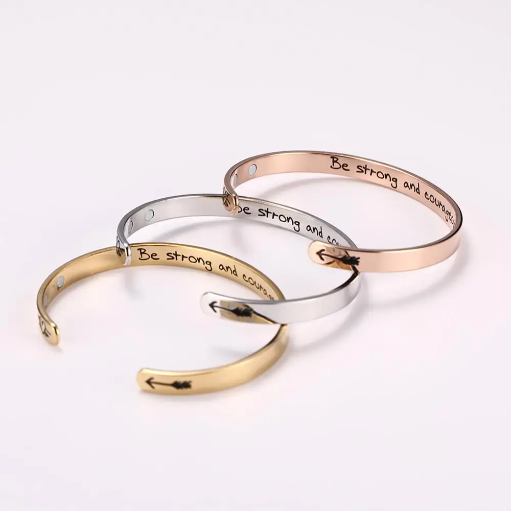 Изысканный C Форма надпись вдохновляющий слово манжета браслет быть сильным и смелым из нержавеющей стали магнитный женский браслет
