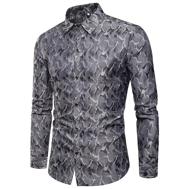 Стильная приталенная шелковая Классическая рубашка для мужчин, 2022, новая брендовая мужская камуфляжная рубашка, деловая Мужская Повседневная рубашка, Camisa Social Masculina 3XL