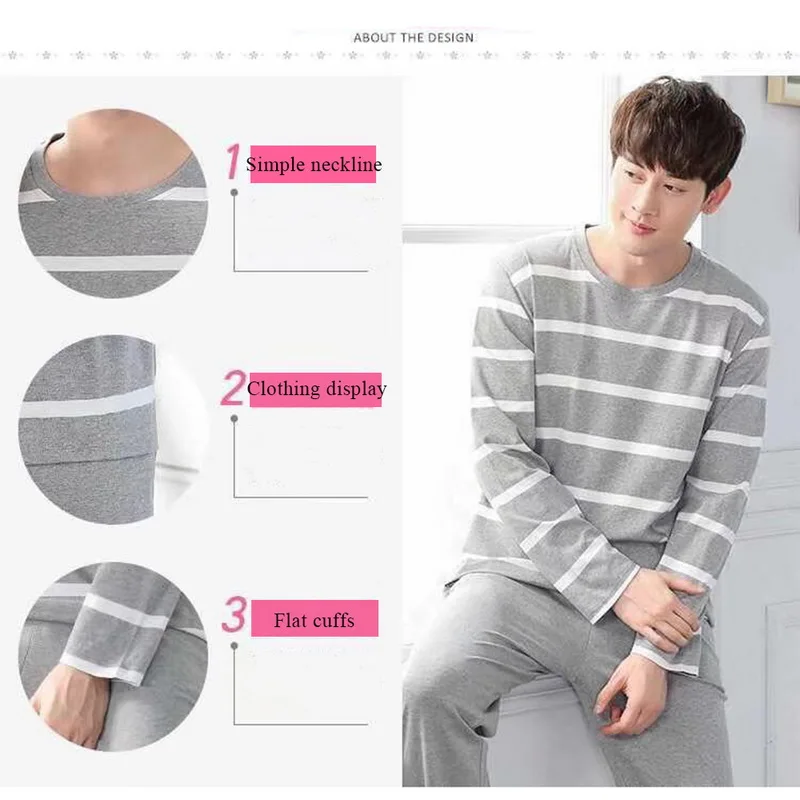 Новинка Весна 2020, Повседневная тонкая свободная пижама с длинным рукавом и круглым вырезом для мужчин, одежда для сна с принтом, домашняя одежда