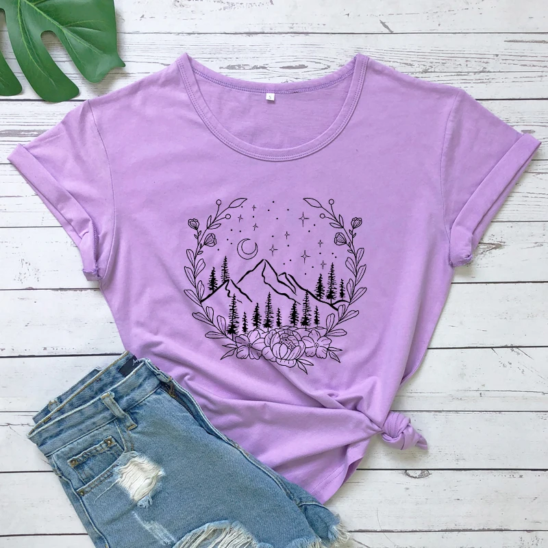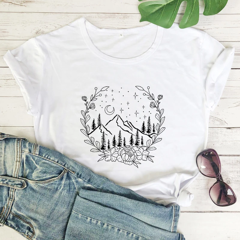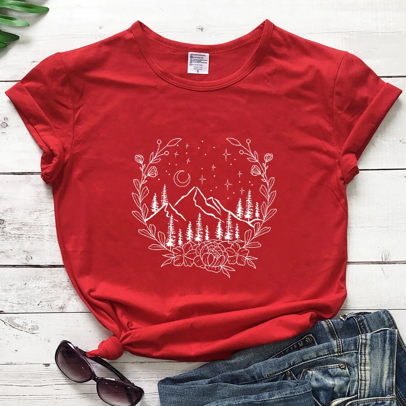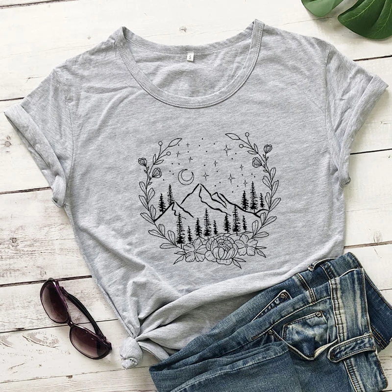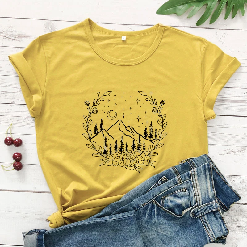 Футболка женская в стиле эстетики цветов гор и природы, стильная уличная футболка с коротким рукавом для кемпинга, походов, топ с графическим рисунком, на лето