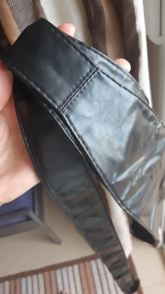 пояс не очень широкий, обвязаться вдвое можно, есть прорезь, чтобы продеть пояс, но она настолько маленькая, что он не продевается. За 3,5€ (цена, по которой купила) я бы в магазине прошла бы мимо него.