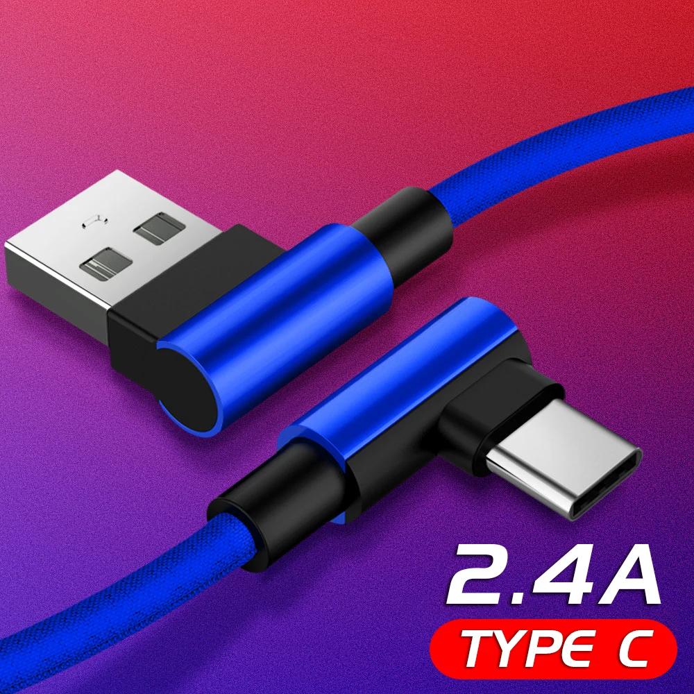 Кабель Micro USB Type-C, 90 градусов, 2,4 А, для быстрой зарядки и передачи данных