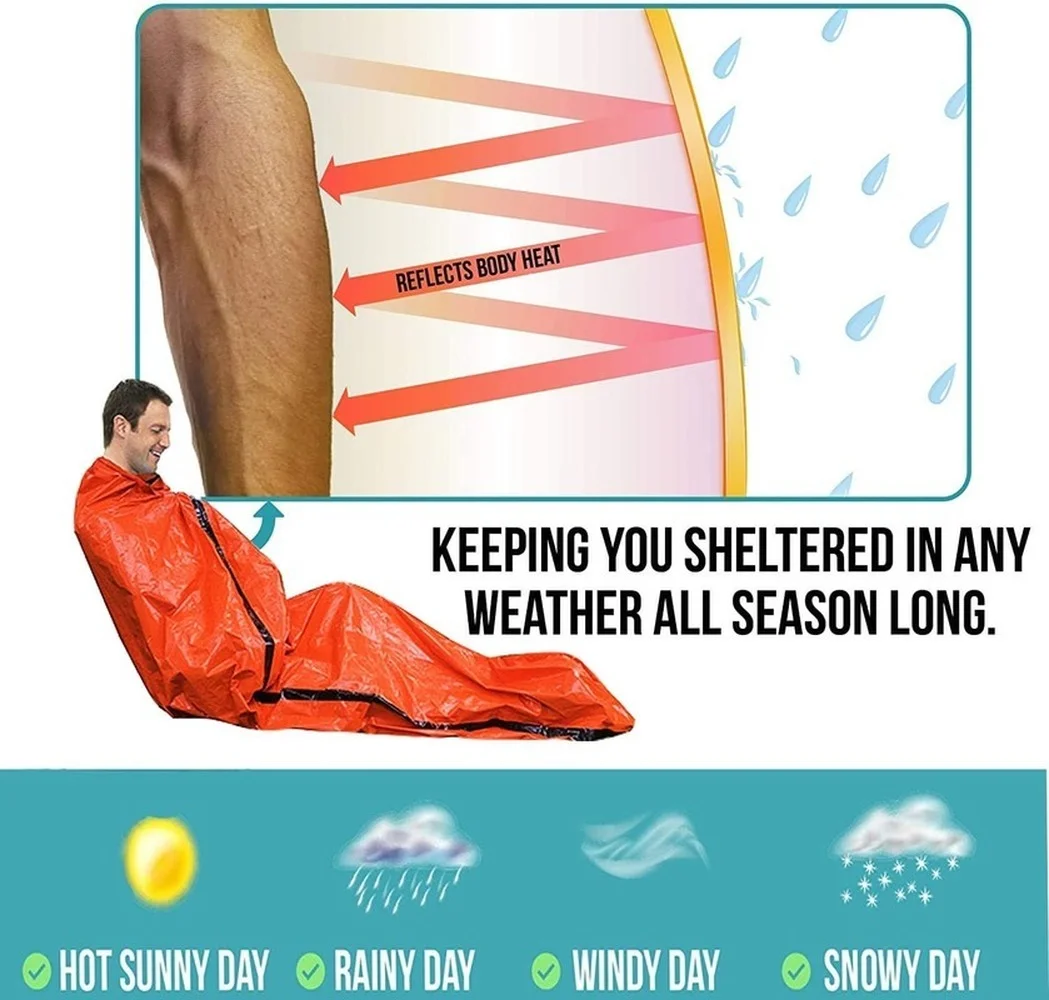 Аварийный спальный мешок для выживания, легкий водонепроницаемый тепловое аварийное одеяло, Bivy Sack с портативным мешком на шнурке