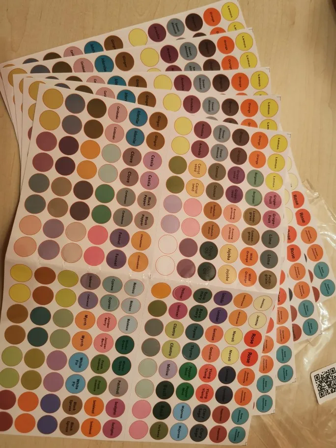 Идеально подходит для маркировки вилок в моей большой коллекции эфирных масел. Есть наклейки разных цветов и с разными именами на английском и других без имени, так что я могу написать то, что вы хотите, например, мое сочетание и сочетание. Приближается много, и я в восторге!