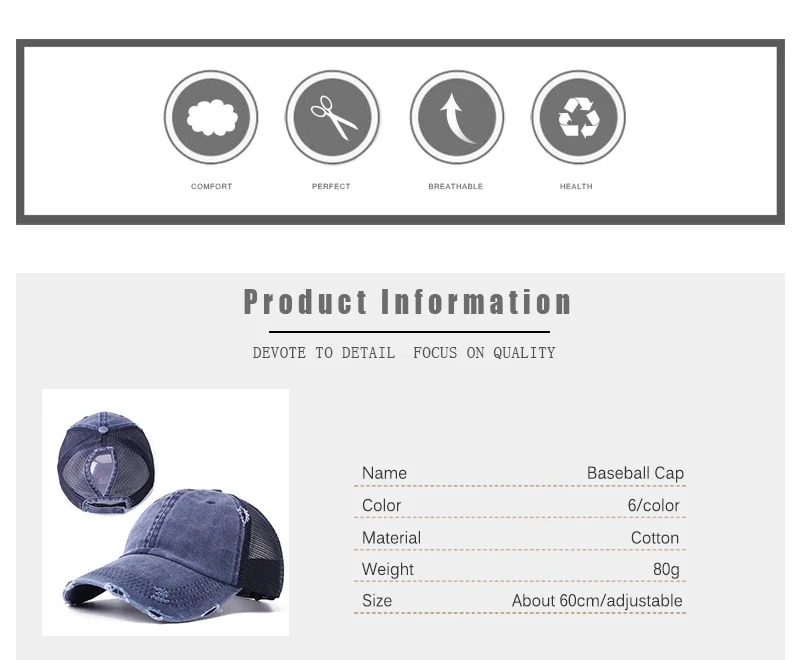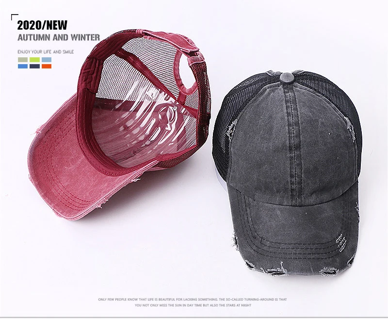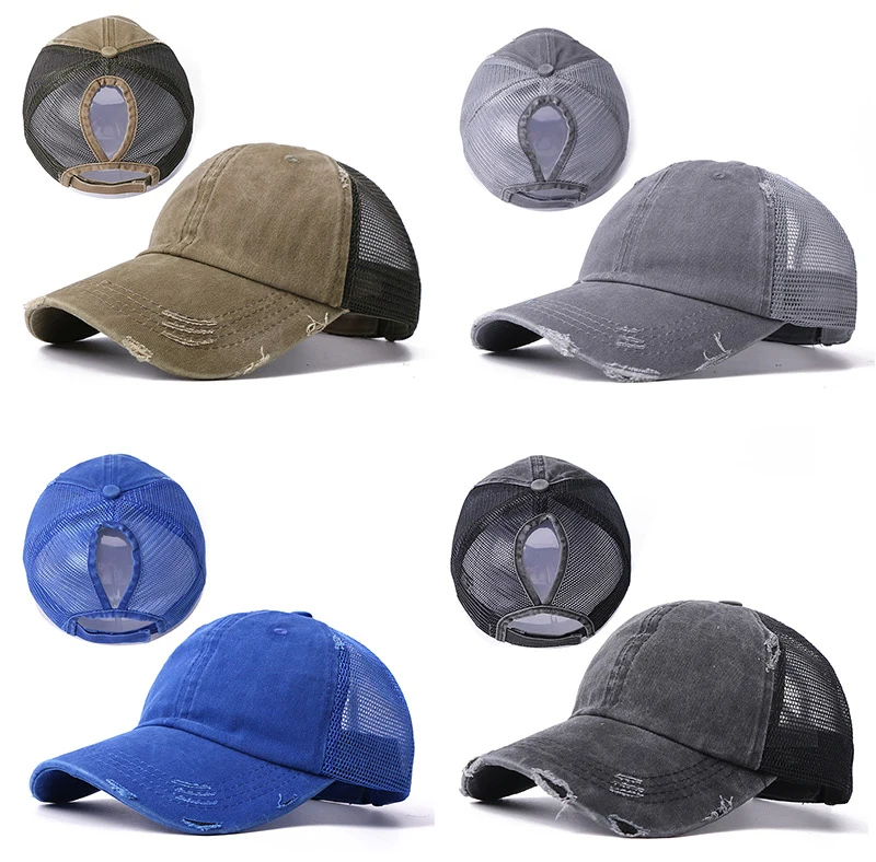 Бейсболка унисекс, хлопковая, с отверстиями под хвост, регулируемая, летняя