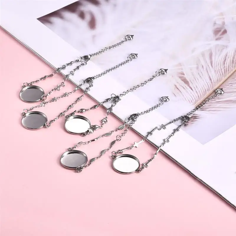5 шт. DIY Нержавеющаясталь браслет базовый набор круглый кабошон ти...